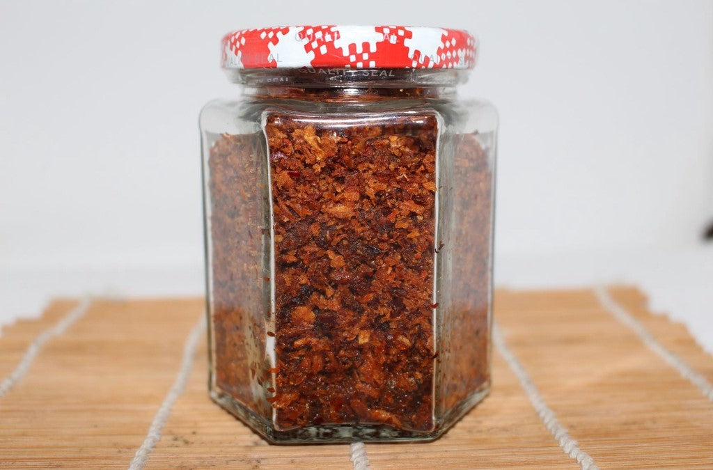 طبق خيط السمك المقرمش والروبيان من لو، وهو طبق تقليدي من وصفات عائلة لو التي تعيش في بلدة صغيرة في إيبوه، بيراك. يا له من طبق جانبي لذيذ من خيط السمك والروبيان، يُناسب النودلز والأرز والعصيدة والبوبيا والسوشي والبيتزا والساندويتشات واللحوم والخضروات والمي هون المقلي.