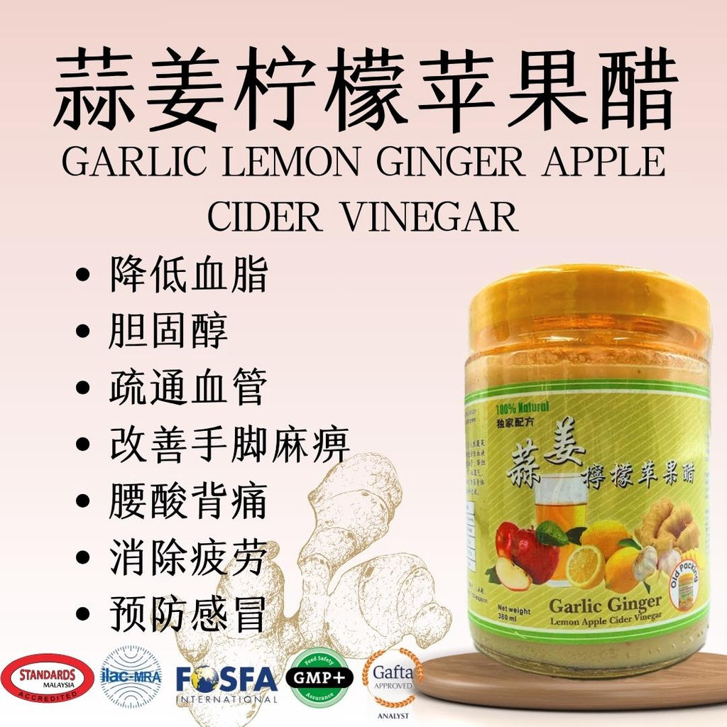 عصير الثوم والليمون والزنجبيل وخل التفاح (بدون سكر)