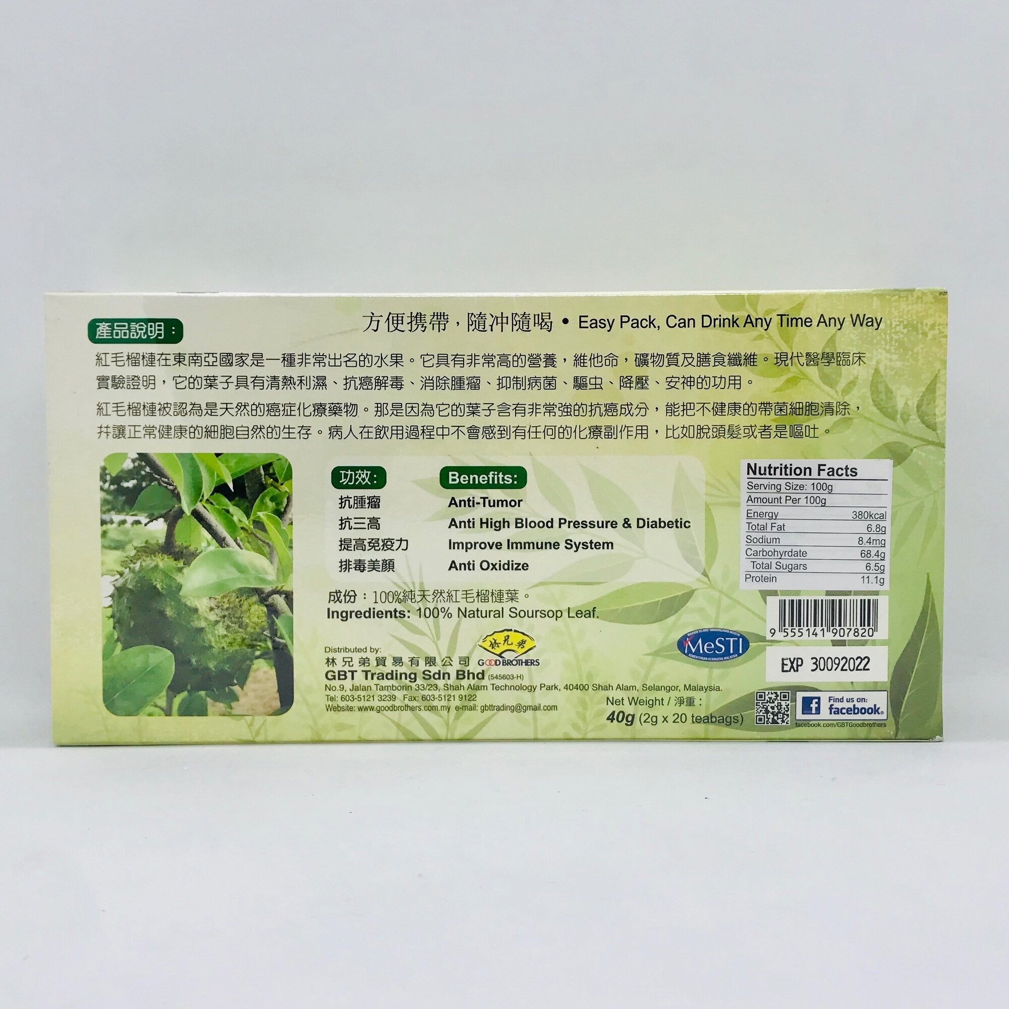 Natural Soursop Leaf Tea 红毛榴莲叶茶 (2g x 20 teabags)