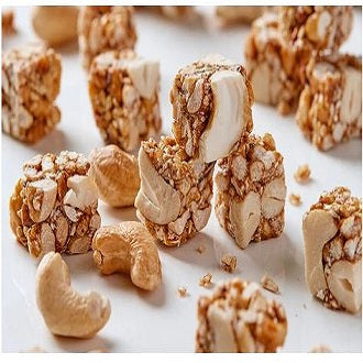 Cashew nut 86.5%, Sugar 2%, Lime 2%, Spicy flavor soup cube 2%, Milk 1%, Coconut milk 1%, Red chili powder 1%, Condiments 1%, Butter 0.5%, Sugar paste sae 0.5%, Salt 0.5%, Kaffir lime leaves 0.5%, Lemongrass 0.5%, Galangal 0.5%, Dried red chillies 0.5%