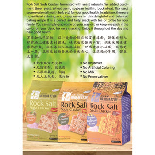 Pepper Buckwheat Rock Salt Soda Crackers combine the robust flavor of black pepper with the nutritional benefits of buckwheat and the natural touch of rock salt. These crackers are a healthy and tasty choice for snacking or as an accompaniment to meals.