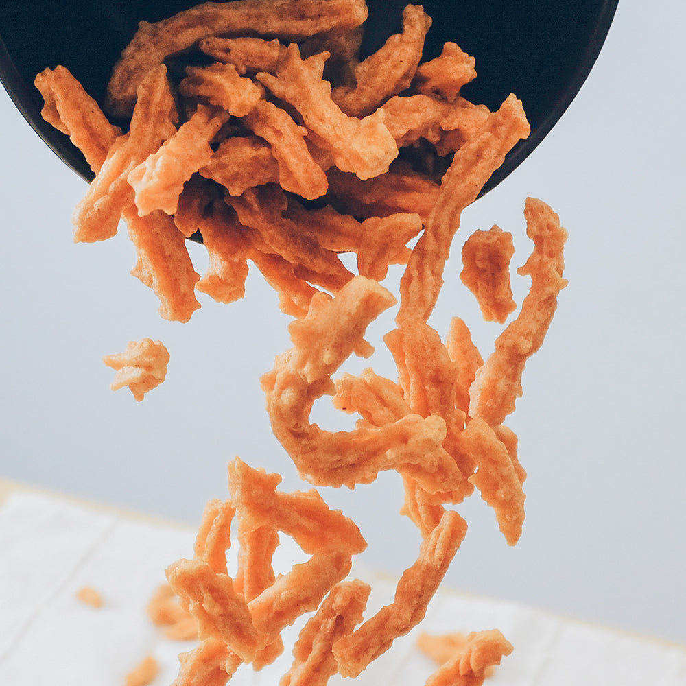 It is made from natural sea prawn flesh (with their head and shell removed), peanut cooking oil and seasoned with all-natural spices.